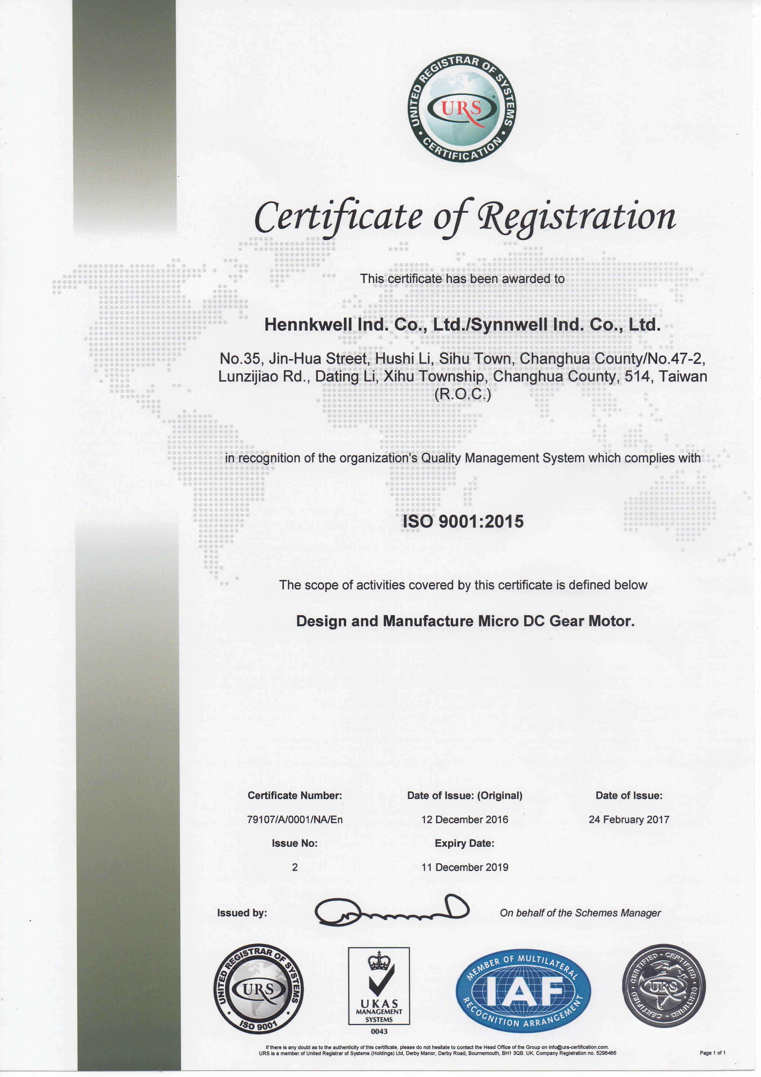 2016/12/15 HennkwellHennkwell est un fournisseur de petits moteurs à courant continu certifié ISO9001:2015 et ISO:14001:2015.
